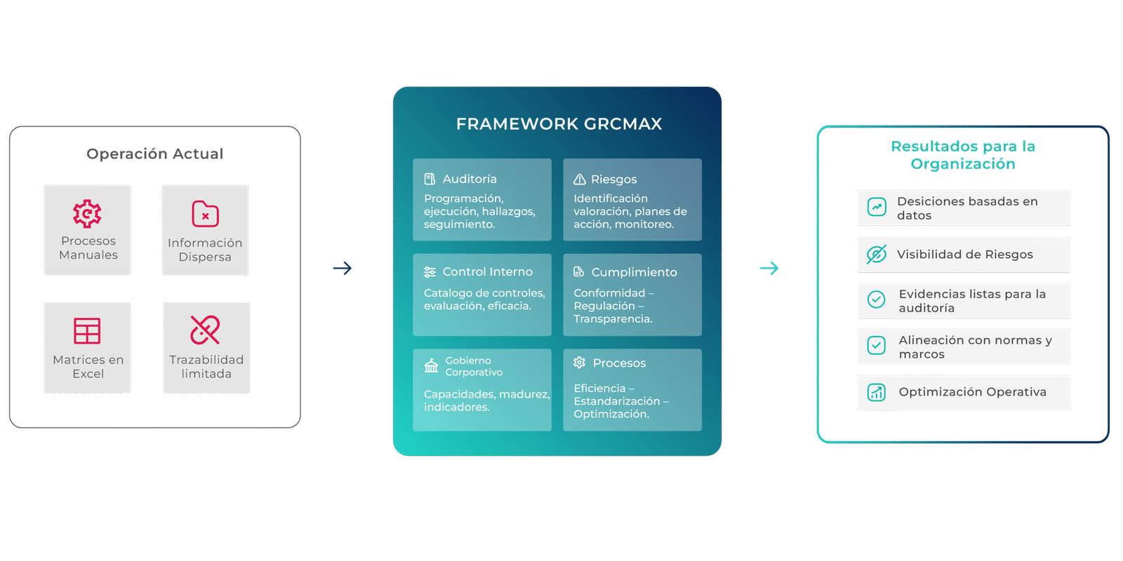 Este es el framework que utilizamos para integrar tu gestión de Riesgos, Control, Auditoría y Cumplimiento sin fricciones
